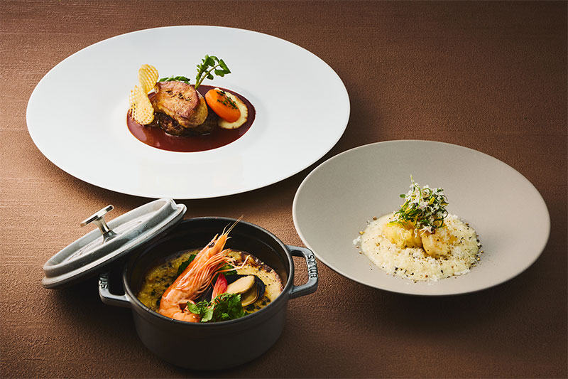 A fusion of French and Japanese headlined by dishes made with carefully selected ingredients slow-baked in a charcoal oven to bring out the full flavor profile. The menu accommodates travelers’ diverse culinary requirements.
