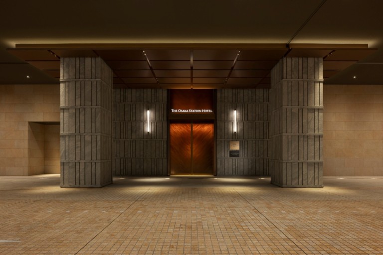 エントランスでは、初代大阪駅舎の赤煉瓦を連想させる赤く艶めく扉が「時空の旅の始まり」を告げる。